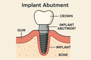 What is implant abutment? In plain terms, an implant abutment is the connector piece that joins the buried implant post to the visible tooth replacement